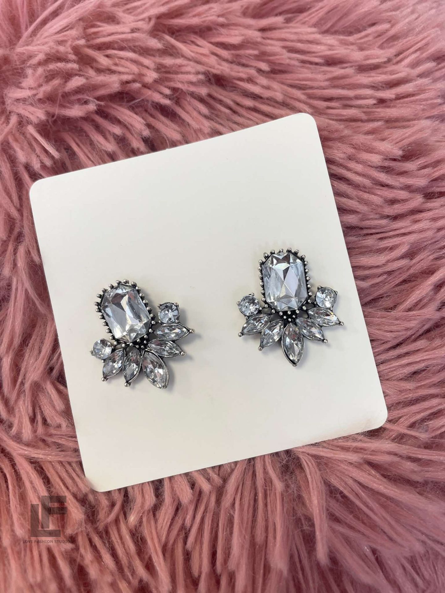Дизайн: Oversize, сребристи с бели камъни
