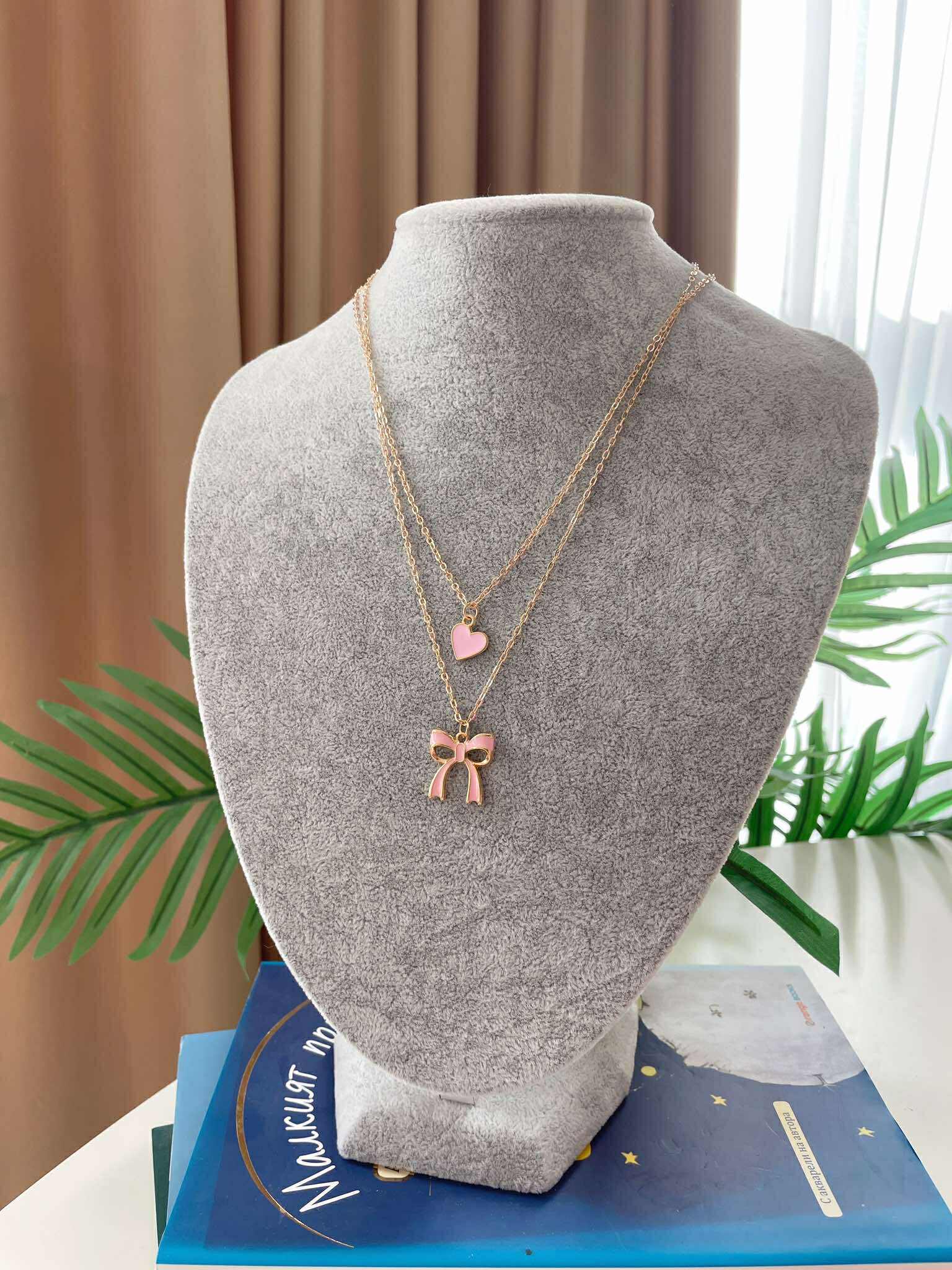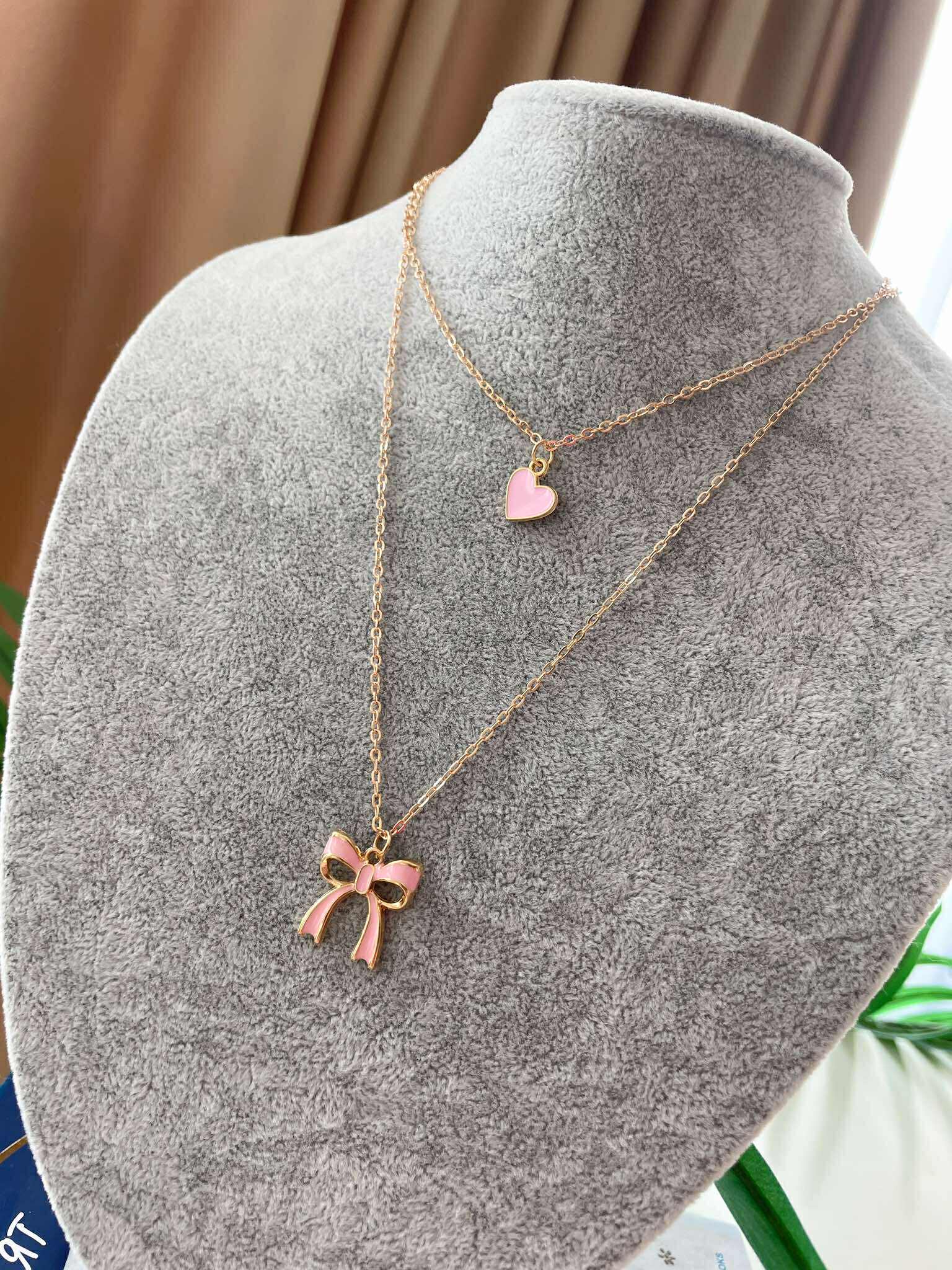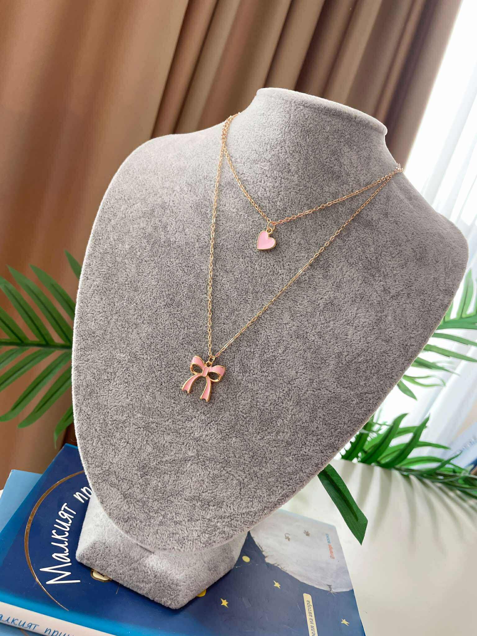 Дизайн: Цвят метал- златист , цвят декорация – розов. Сетът включва 2 броя колиета