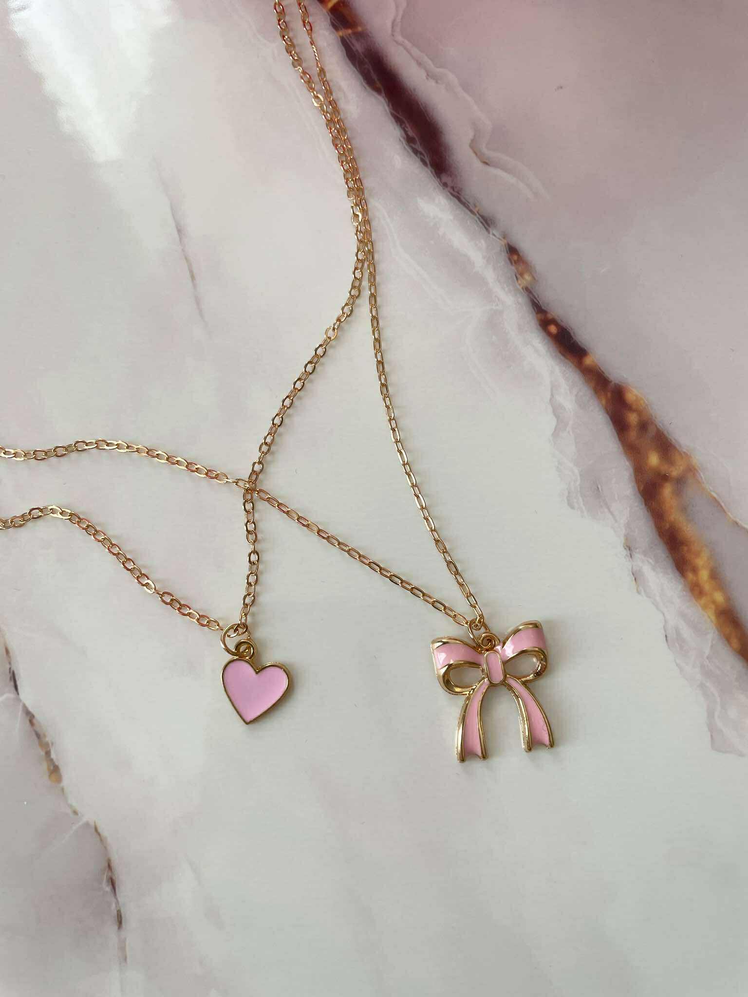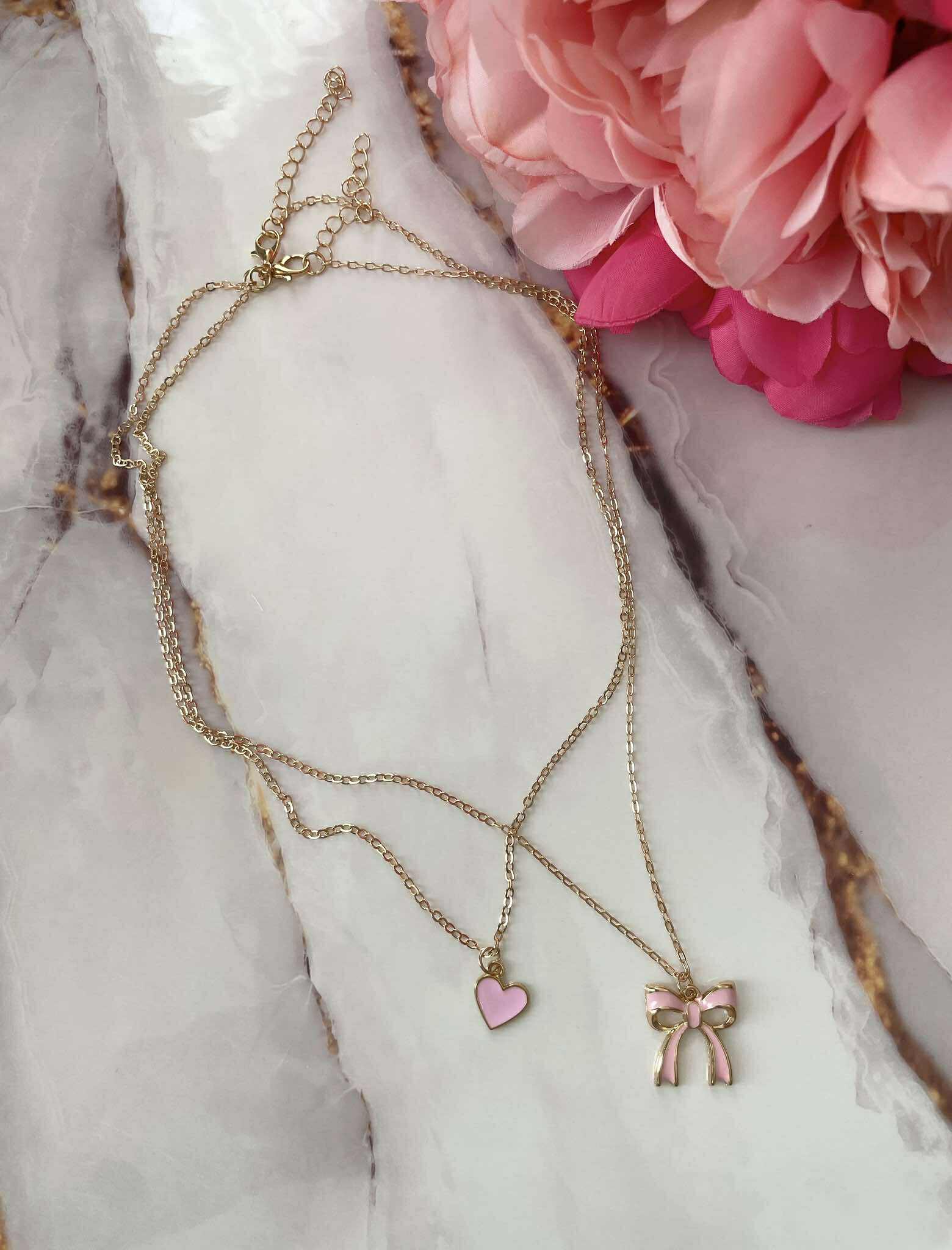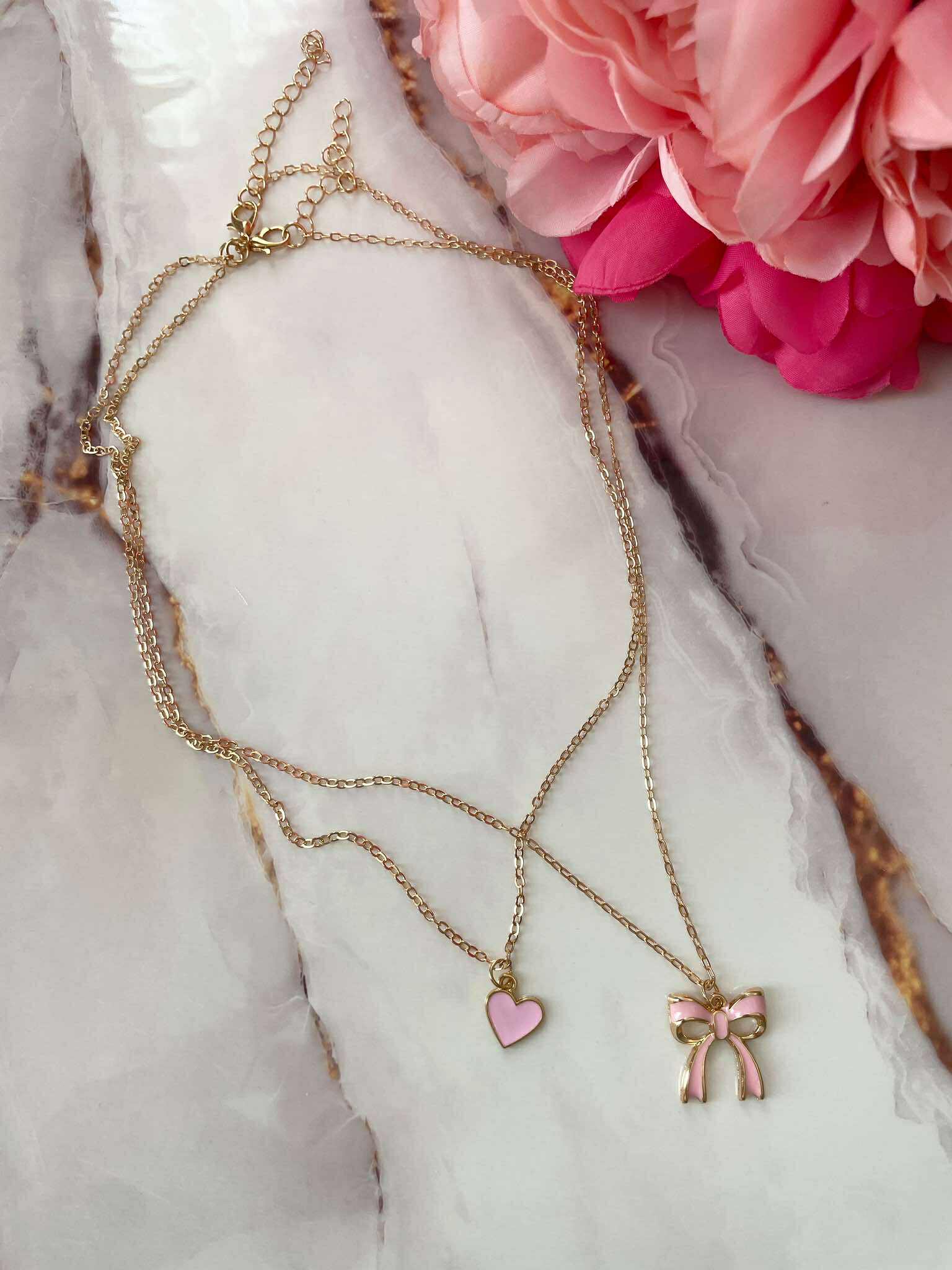 Дизайн: Цвят метал- златист , цвят декорация – розов. Сетът включва 2 броя колиета